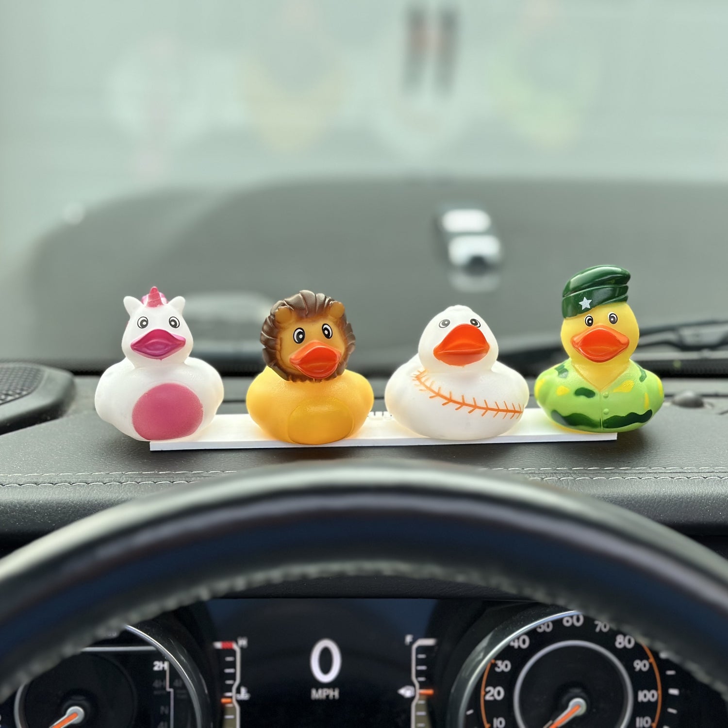 Showcase your ducks proudly on the dash with our multicolored stands. Holds up to four ducks securely with car-safe adhesive. Available in three colors (black, white, silver).